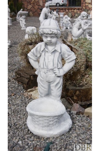 Piękna figura predstawiająca chłopca trzymającego kosz na kwiaty.