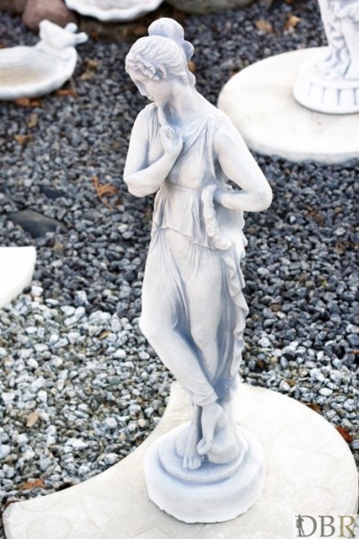 Figura wykonana z białego betonu. Przedstawia zamyśloną kobietę z czasów antycznych.