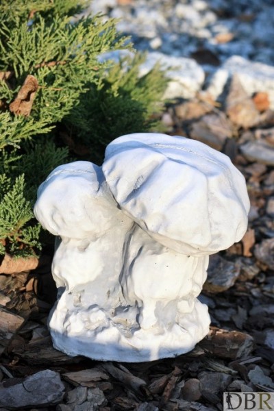 Wykonane z białego betonu malutkie grzybki.