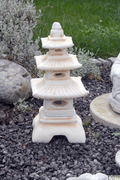 Betonowa pagoda o trzech dachach. Dekoracja nadająca ogrodowi dalekowschodni klimat.