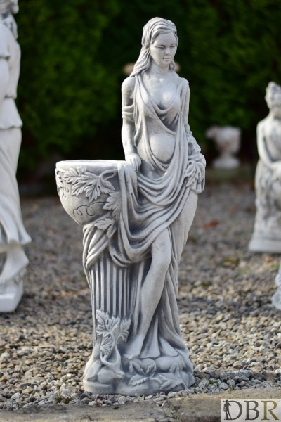 Figura kobiety z kolumną ,zakończoną donicą ,w której można zasadzić kwiaty.